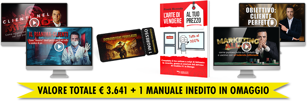 Attenzione: il manuale inedito omaggio lo riceverai soltanto partecipando a Imprenditore Fuorilegge: il piano operativo di Frank Merenda per stravolgere gli standard di ogni settore e restare sempre un passo avanti alla concorrenza (il biglietto è gratis ed è incluso nel kit!)